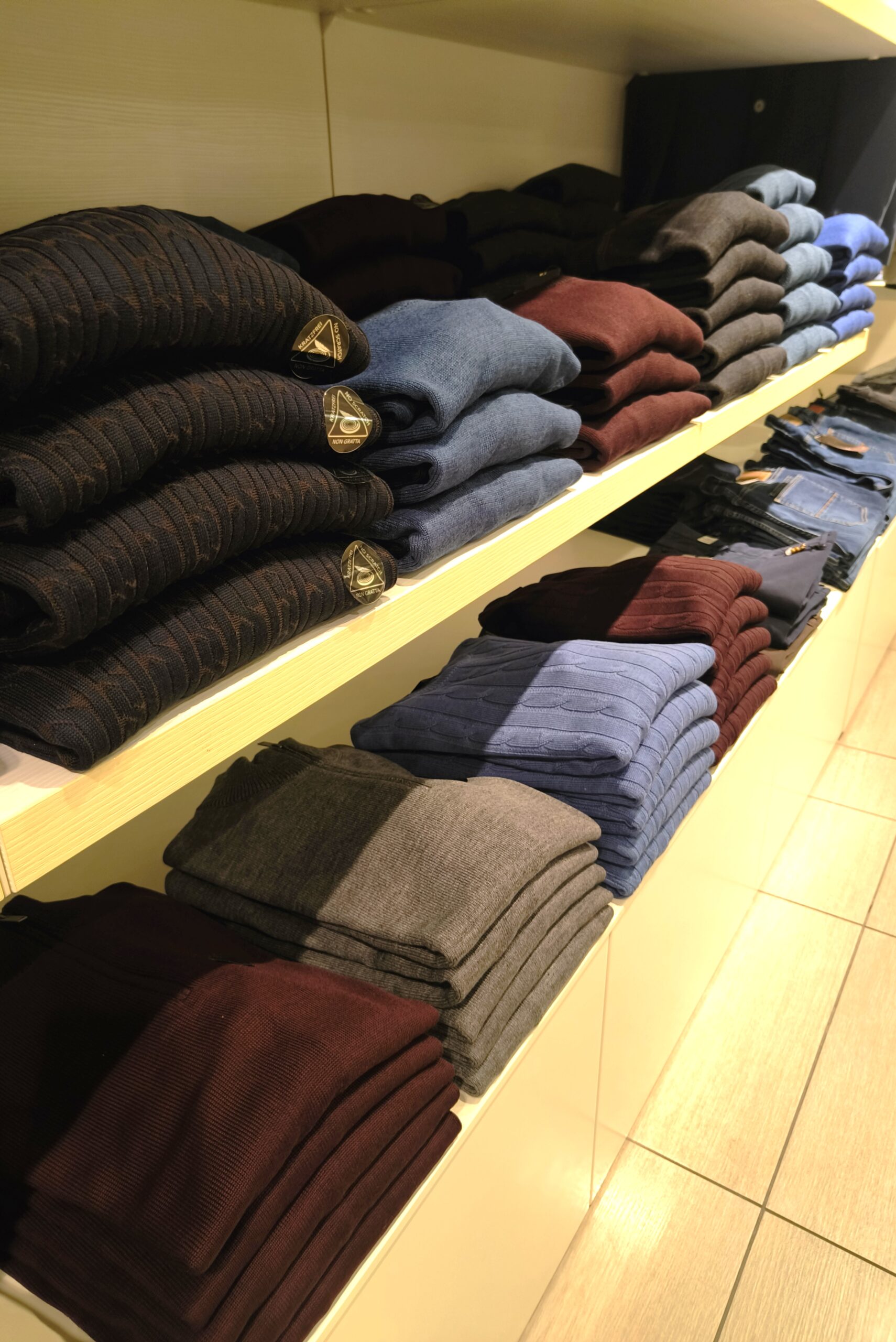 Tra i brand presenti spicca Montechiaro, rinomato per la sua maglieria di alta qualità e lo stile intramontabile, insieme a marchi come Gaudì, Kevin Up, Free Man e altri nomi di eccellenza del fashion italiano.